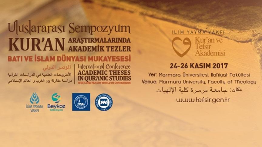 İlim Yayma Vakfı, “Kur’an Araştırmalarında Akademik Tezler: Batı ve İslam Dünyası Mukayesesi” başlıklı uluslararası bir sempozyum düzenliyor. Sempozyum 24-26 Kasım 2017 tarihleri arasında Marmara Üniversitesi İlahiyat Fakültesi Raşit Küçük Konferans Salonu’nda gerçekleşecek.