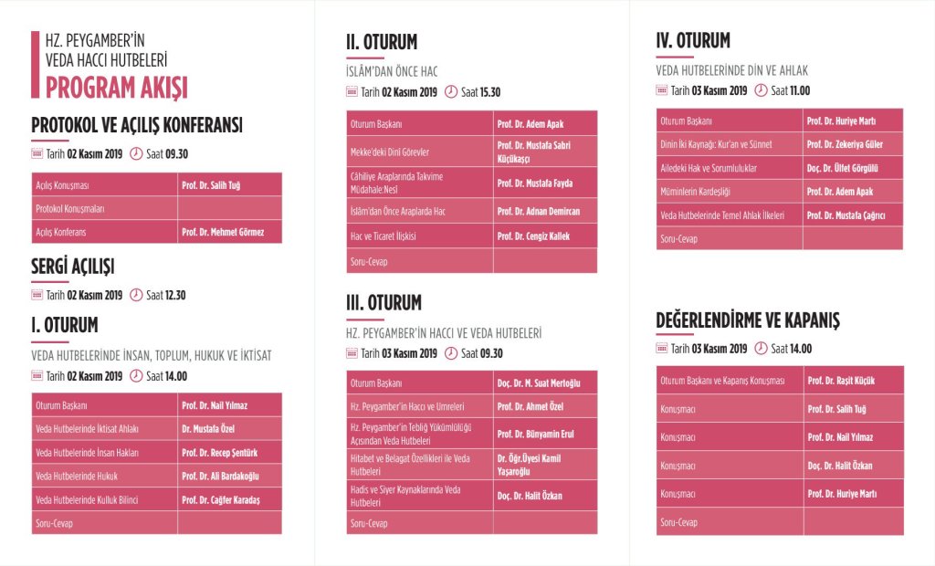 Veda Haccı ve Hutbeleri temalı sempozyum ve hat sergisi 2-3 Kasım 2019 tarihlerinde Zeytinburnu Kültür ve Sanat Merkezi’nde gerçekleştirilecek. Program ile ilgili ayrıntılı bilgi ve programın akışına buradan ulaşabilirsiniz.