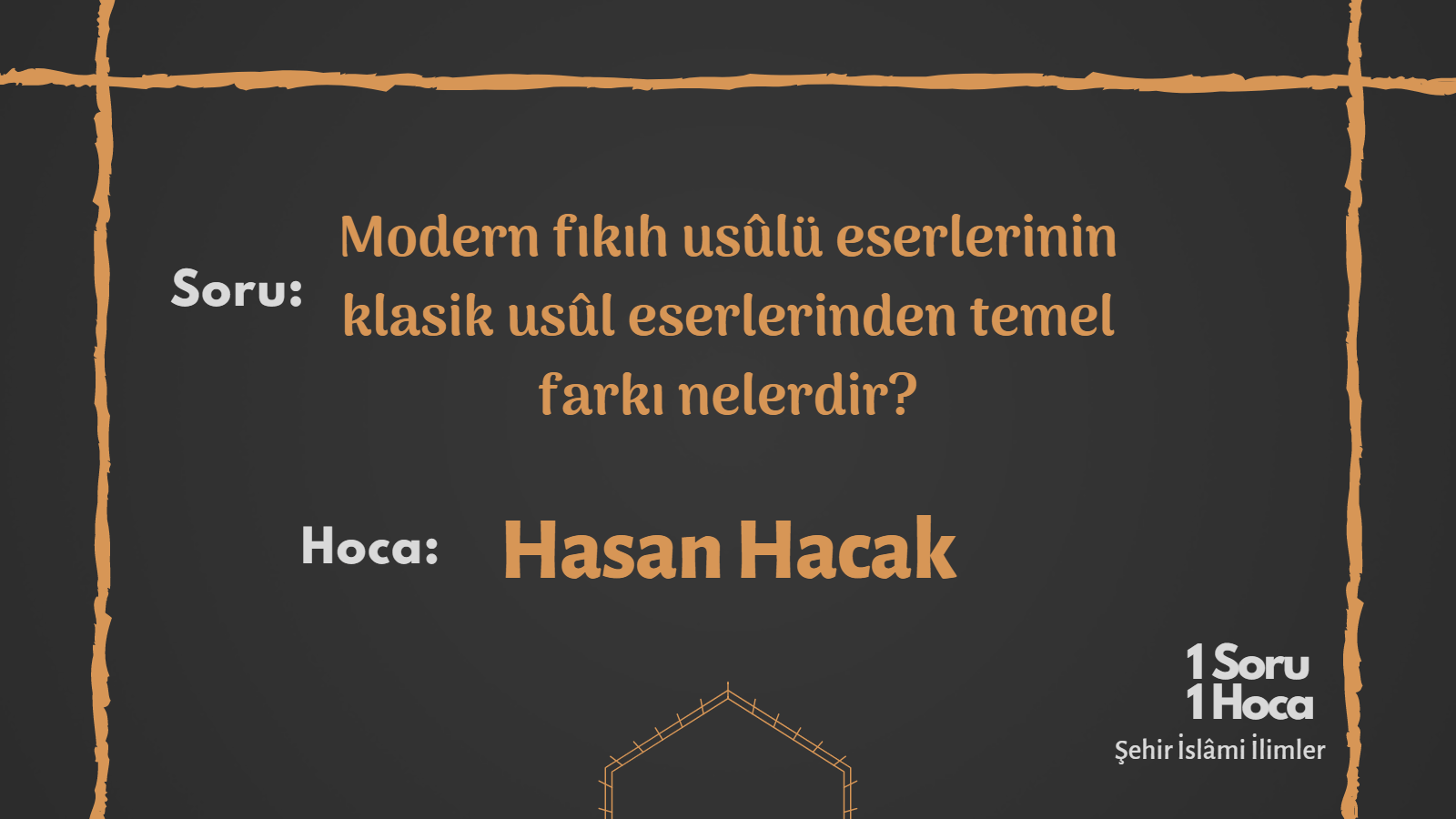 1 Soru 1 Hoca’da bu sefer Hasan Hacak hocamıza sorduk: 19. Yüzyıl ve sonrası için düşünürsek fıkıh usulü kitaplarının yazımında bir metot değişikliği görüyoruz. Bu bağlamda belki de birbirinin benzeri olarak görülebilecek pek çok usul kitabı yazılıyor. Bu kitaplardan bazıları günümüzde üniversitelerde halen okutulmakta. Peki, bu kitapları o müelliflere yazdıran ana etken neydi hocam? Niye farklı tarzda bir usul yazımı ihtiyacı duyduk?