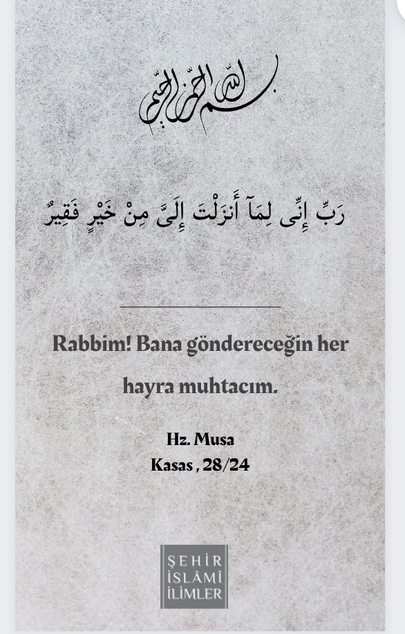 “Rabbim” diyor. “Bana indireceğin her türlü hayra muhtacım.” (Kasas, 28/24)