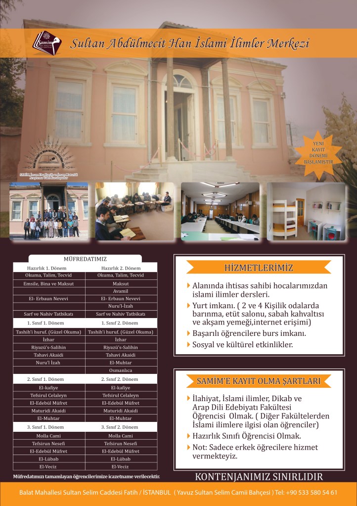 İstanbul’da klasik İslami İlimler Eğitimi veren kurumlar serimize SAMİM ile devam ediyoruz.